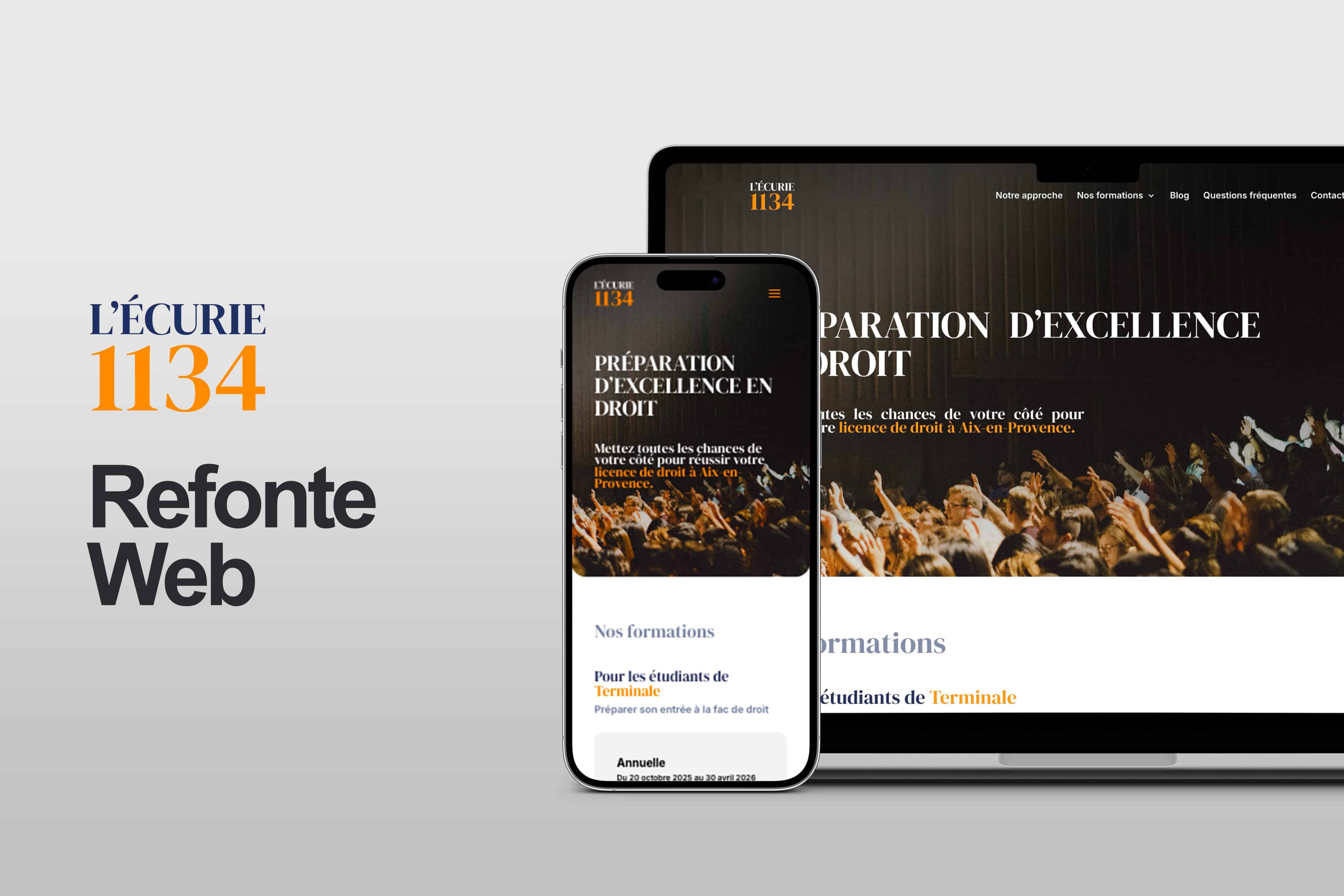 Dans une volonté de remise en question constante, L’Écurie 1134 a entrepris la refonte complète de son site pour offrir une expérience fluide, claire et engageante à ses futurs étudiants. Ce nouveau site met en lumière leurs nouveaux locaux à Aix-en-Provence et présente avec clarté leurs trois programmes pédagogiques actualisés, pensés pour accompagner chaque profil vers la réussite en droit.